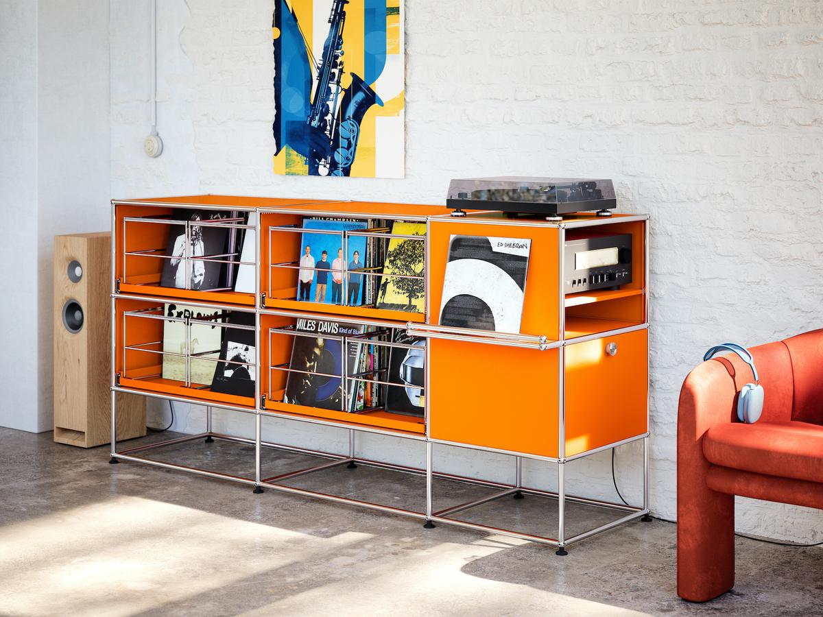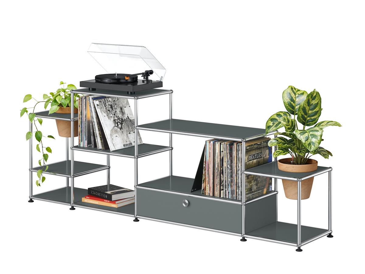 Ein wohnliches USM Haller HiFi Möbel mit passender Plattenablage