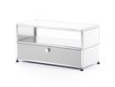 Die USM Haller TV-Bank ist Teil des USM Haller Möbelbausystems, das in den 60er Jahren von Fritz Haller und Paul Schärer entwickelt wurde. Wie das gesamte System zeichnet sich natürlich auch die USM Haller TV-Bank durch Eleganz und technische Perfektion aus. Sie dient so nicht nur als erstklassiges Lowboard für den Fernseher, sondern bietet mit Fach und Ausziehtür auch ausreichend Platz für die nötige Technik - mit passenden USM Inos CD-Einsätzen beispielsweise auch für die CD-Sammlung.