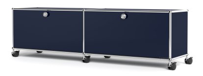 USM Haller TV-/HiFi-Lowboard, individualisierbar, Stahlblau RAL 5011, Mit 2 Klappen, Ohne Kabeldurchlass