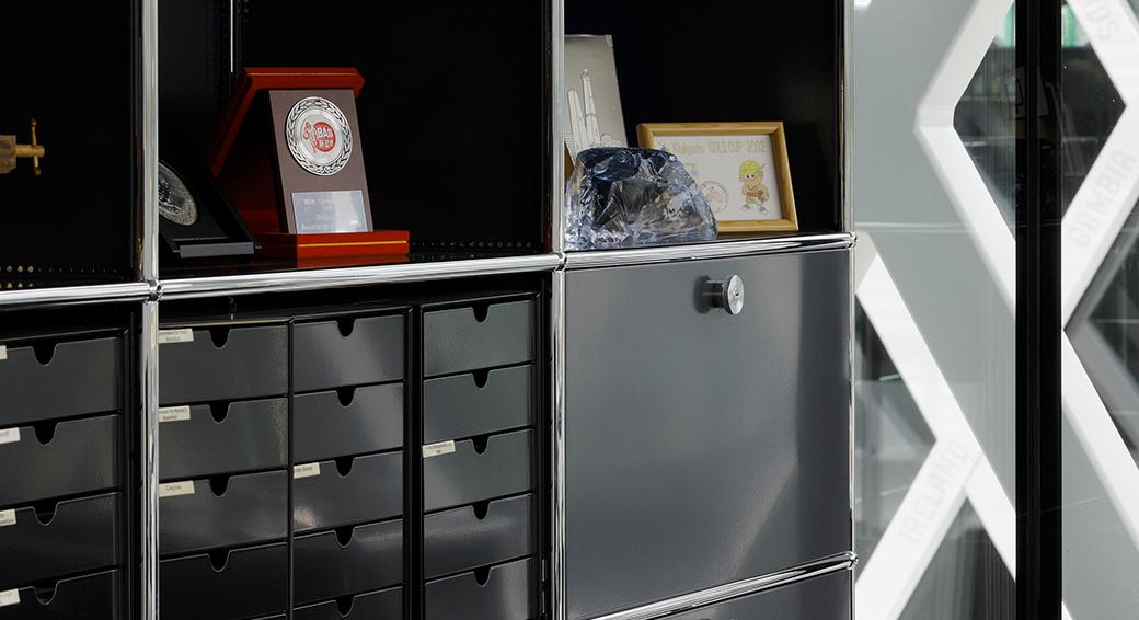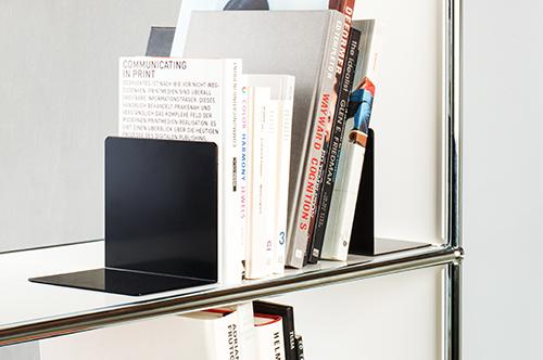 Unter den USM Accessoires finden sich auch zahlreiche Produkte für den Wohnbereich. So lässt sich mithilfe der USM Buchstütze Ordnung im USM Bücherregal schaffen. Dank ihrer magnetischen Eigenschaften bleiben die Buchstützen an ihrem Platz und fügen sich diskret in das minimalistische Design ein. Auch die USM Rollcontainer erfreuen sich großer Beliebtheit und sind je nach Bedarf mit Rollen oder Gleitern erhältlich, können aber auch umgebaut werden. Dank der USM smow how Videos steht dem Ein- oder Anbau ihrer USM Accessoires nichts mehr im Wege. Dort erfahren Sie außerdem, wie Sie die Transportsicherung an Ihrem Möbel lösen können. Die USM Möbel sind standardmäßig mit einem nicht verschließbaren Griff ausgestattet. Sollte ein Möbel aufgrund sensibler Dokumente verschlossen werden können, gibt es die Möglichkeit, einen Schlossgriff einbauen zu lassen.
