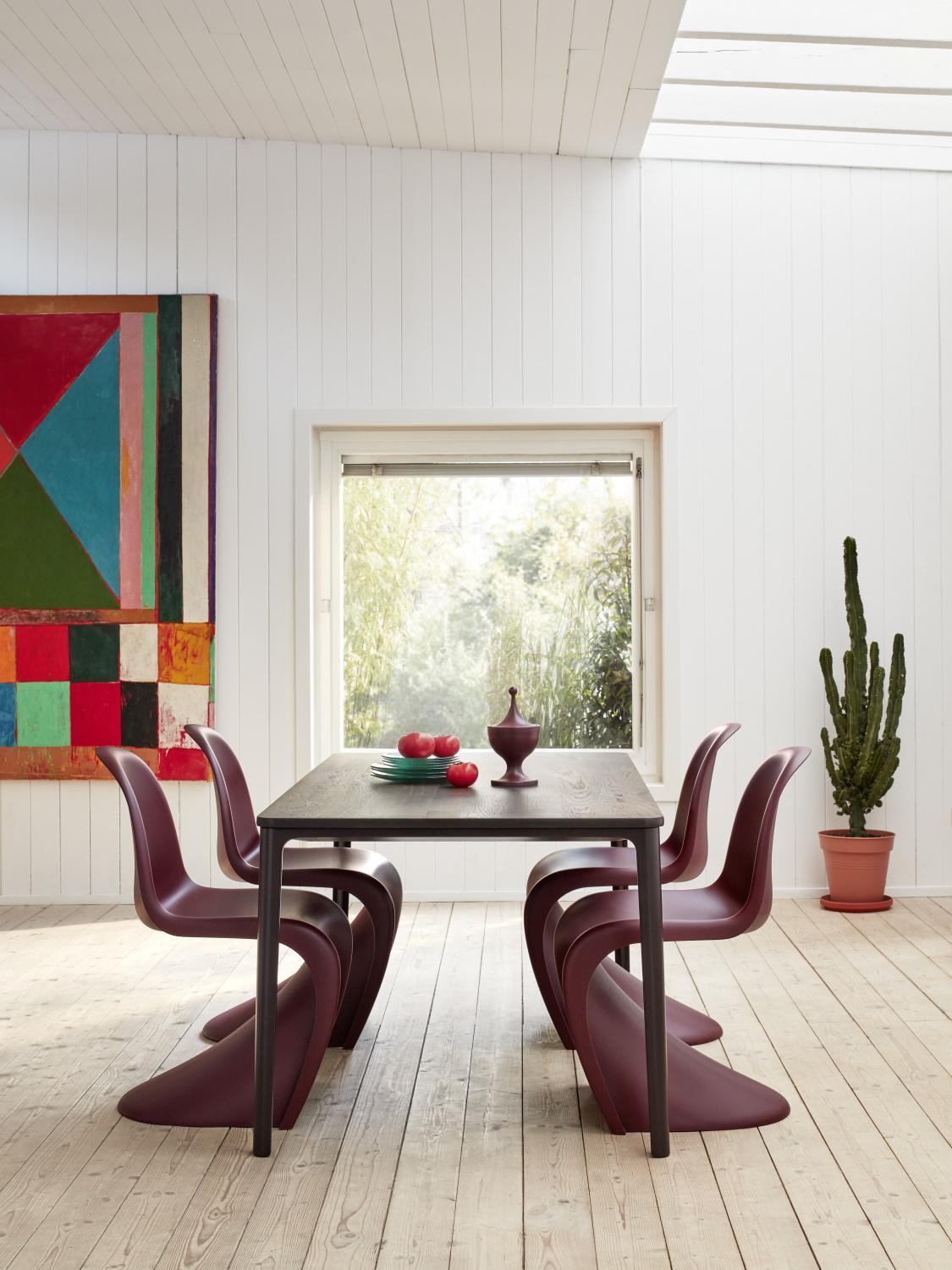 Der Designklassiker wird seit 1990 unter dem Namen Panton Chair Classic wieder aus dem ursprünglichen und zuverlässigen Vollkunststoff mit Hochglanzlackierung durch Vitra vertrieben. Zuletzt autorisierte Verner Panton eine Version mit matter Oberfläche aus durchgefärbtem Polypropylen, die endlich die beste Qualität zu einem günstigen Preis ermöglicht. Außerdem entwickelte Vitra eine Juniorversion des beliebten Kunststoffstuhls in kindgerechten Farben und Proportionen, den Panton Junior. Aber in welcher Form auch immer - der ergonomische Freischwinger mit seiner einzigartig konkaven Wölbung ist legendäres Wahrzeichen der 1960er-Jahre und moderner Stilgarant zugleich.
