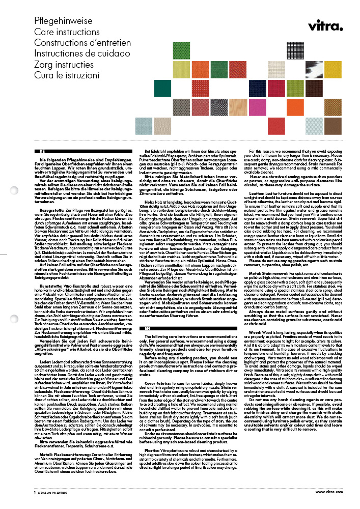 Vitra Pflegehinweise