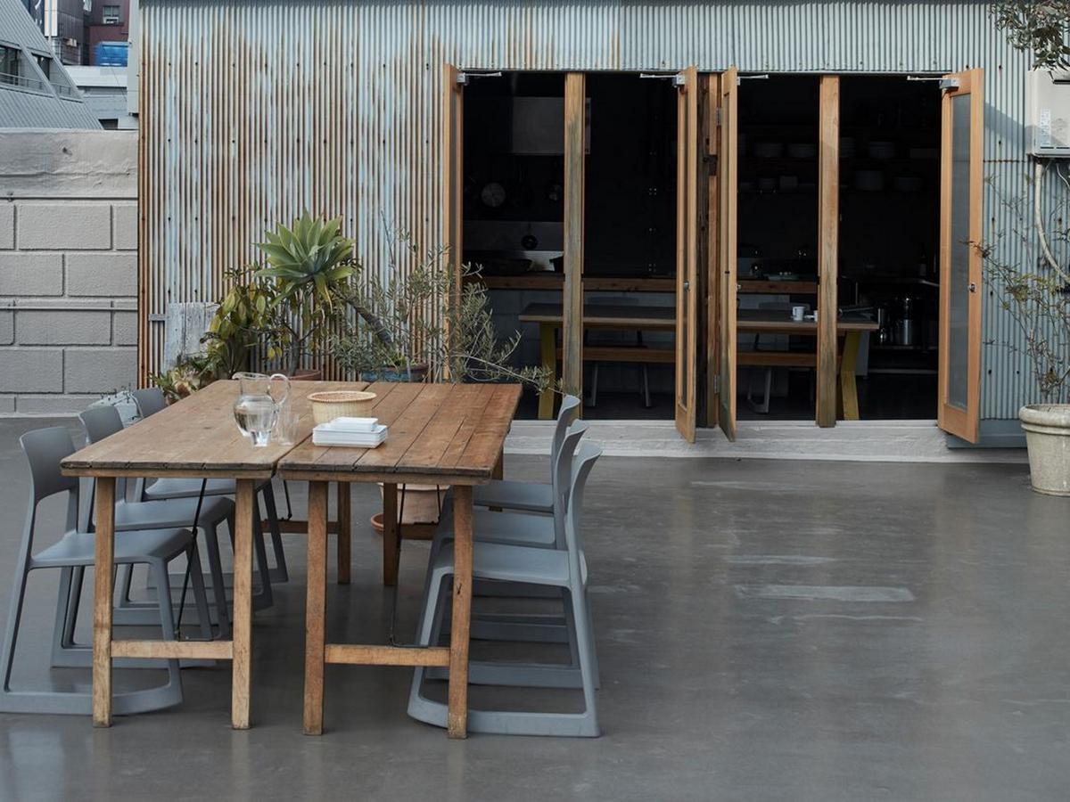 Metalle werden pulverbeschichtet, Hölzer lösemittelfrei lackiert. Der Recyclingwerkstoff Kunststoff ist für Vitra das wohl am meisten und innovativsten eingesetzte Material, das zudem langlebig, hygienisch und kostengünstig ist.