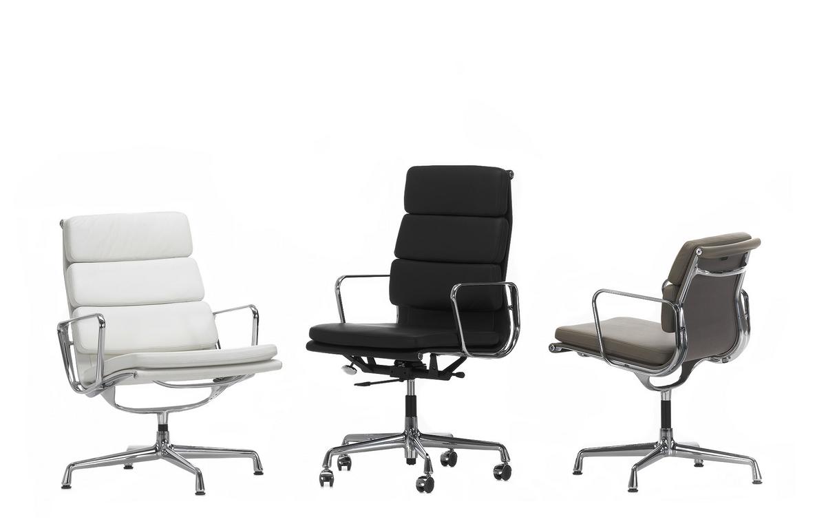 Die original Vitra Soft Pad Chairs wurden 1969, zehn Jahre nach dem Aluminium Chair, präsentiert. Sie gleichen den Aluminium Chairs in ihrer Form und bestehen so aus zwei federnden, bespannten Aluminiumbügeln. Im Gegensatz zu den Aluminium Chairs sind die verschiedenen Soft Pad Chairs jedoch wesentlich voluminöser, da sie mit weichen Sitzpolstern ausgestattet sind. Sie finden sich primär in Büro- und Konferenzräumen wieder und versprechen hohen Komfort und Sitzsicherheit.