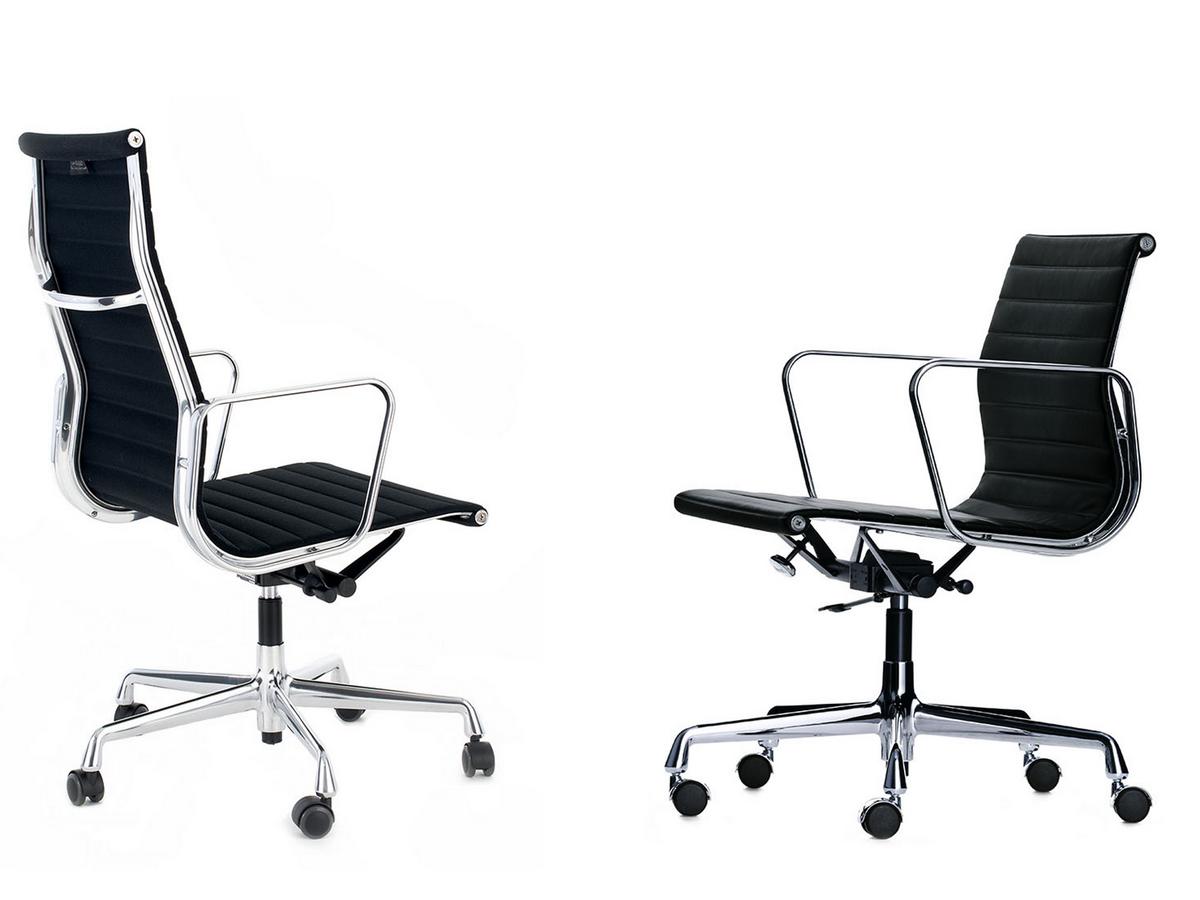 Die Ausführungen EA 117 und EA 119 fußen auf einem Fünfsternfuß mit Rollen, welche für harten oder weichen Boden individuell angepasst werden. Beide sind drehbar, höhenverstellbar und verfügen über eine regulierbare Rückneigetechnik, der EA 119 hat jedoch einen höheren Rücken als die Version EA 117. Sind die Vitra Stühle mit einem Lederbezug ausgestattet, besteht die Rückenlehne aus dem jeweils farblich angepassten Stoff Plano, eine Lederrückenlehne ist gegen Aufpreis möglich.