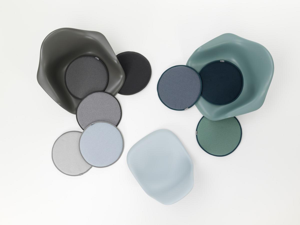 Die niederländische Farbexpertin und Designerin Hella Jongerius entwickelte die Vitra Colour & Material Library, die unterschiedlichste Farbwelten aufzeigt. Die kompakten Seat Dots sind ein Paradebeispiel für die mal kräftigen, mal sanften, immer aber stimmigen Farbkombinationen aus der Feder Jongerius‘: Die zwei Seiten der Vitra Seat Dots bestehen aus verschiedenen Stoffen und Farben und machen die Designerstühle, welche sie formschön ergänzen, noch vielfältiger. Die verschiedenen Seat Dot Kombinationen decken unterschiedlichste Stil- und Geschmacksrichtungen ab und laden dazu ein, Designklassiker wie die Eames Plastic Chairs immer wieder neu zu entdecken.