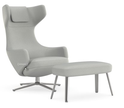 Grand Repos Loungesessel, Sessel Grand Repos & Ottoman, Stoff Cosy 2 Classic Grey, 45 cm, Poliert