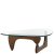 Isamu Noguchi, der nicht nur Designer, sondern auch Bildhauer war, entwarf mit dem Noguchi Coffee Table ein Objekt, das mit seiner einzigartigen Formensprache den Ansprüchen beider Gestaltungsrichtungen nachkommt. Noguchi selbst bezeichnete das Design vielleicht auch deshalb als sein gelungenstes. Das Charakteristische daran ist die insgesamt sehr organische Formgebung, die trotz ihres leichten Erscheinungsbilds sehr robust ist. Die Konstruktion fußt auf zwei symmetrischen, aber entgegengesetzten und im rechten Winkel angeordneten Holzteilen, die eine 19 mm starke, tropfenförmige Glasplatte tragen. Die Kombination der Elemente mutet auf den ersten Blick skulptural an, büßt schließlich aber nichts an Funktionalität ein. Das erste Modell für diesen Vitra Designklassiker entwarf Isamu Noguchi bereits in den 1930er Jahren für den Präsidenten des Museum of Modern Art New York, A. Conger Goodyear - damals noch mit einem Untergestell aus miteinander verbundenen Stützen konstruiert. Diesen Entwurf überarbeitete er 1944, woraufhin der Noguchi Coffee Table entstand, der heute über Vitra erhältlich ist.