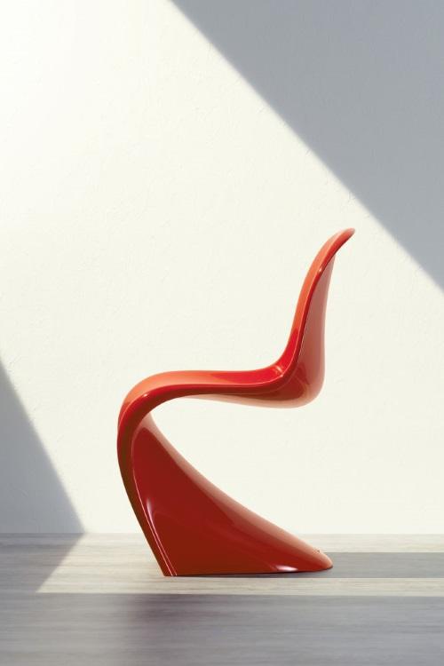 Der Panton Chair gilt als "erster Stuhl aus einem Guss" und gehört so nicht nur wegen seiner fließenden Dynamik zu den revolutionärsten Möbeldesigns des 20. Jahrhunderts. Anfangs wurde das skulpturale Sitzmöbel des dänischen Designers Verner Panton aus fiberglasverstärktem Polyester gefertigt, die teils handarbeitliche Produktion war allerdings zu teuer und wurde bald auf das günstigere Polysteron umgestellt, das sich qualitativ jedoch nicht durchsetzen konnte.