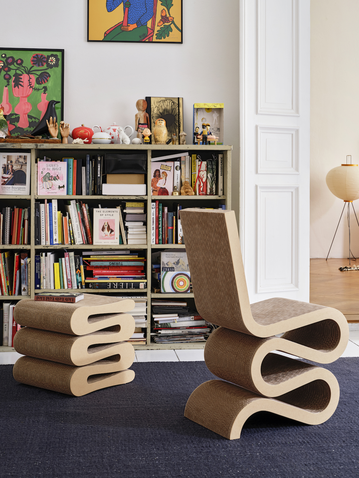 Nicht nur in ästhetischer Hinsicht originell: der Wiggle Side Chair wird aus Wellkarton und Hartfaserplatten gefertigt