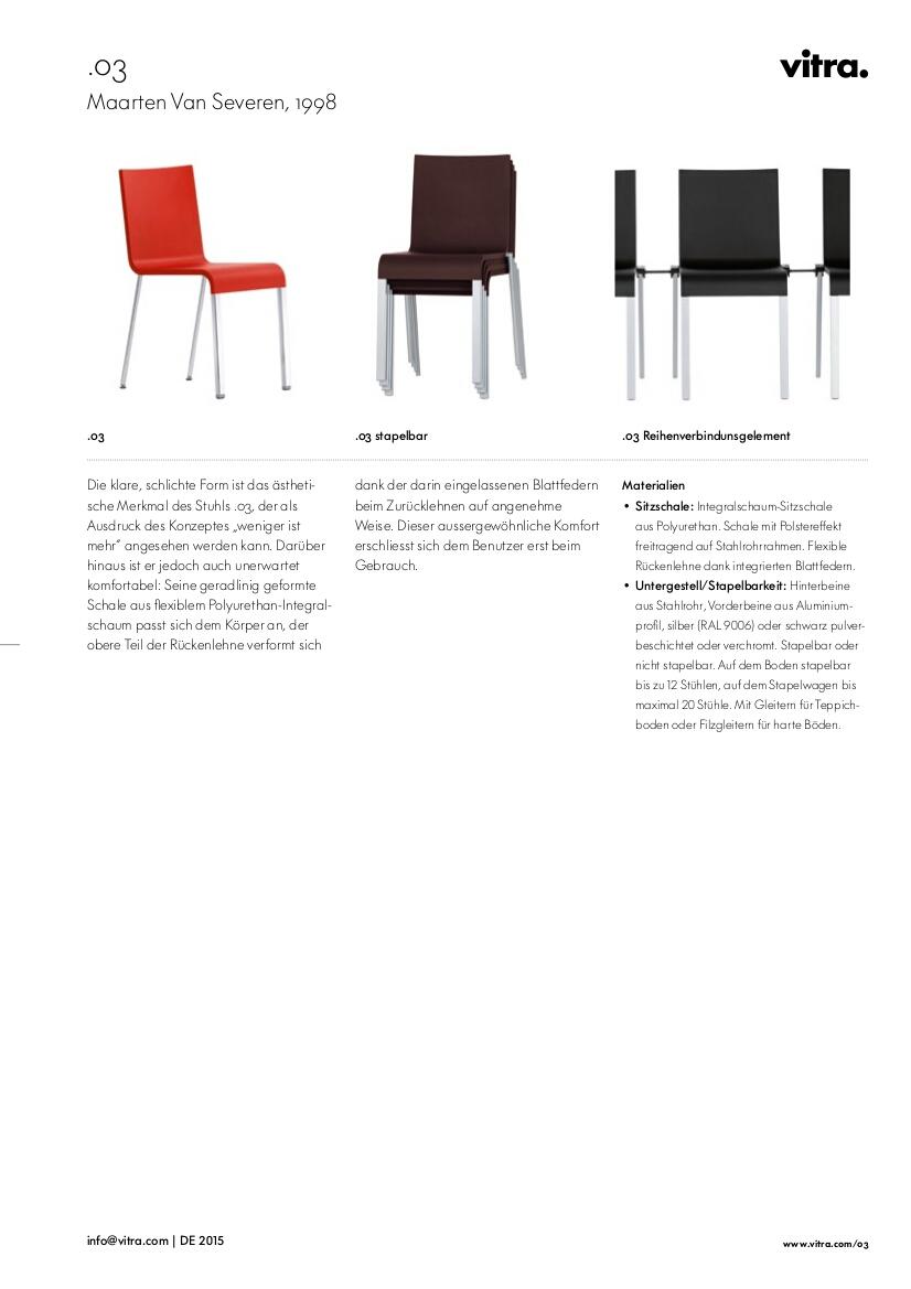 | Ausführungen | Der .03 Black ist eine Vitra Sonderedition des .03 - ganz in Schwarz. Der Vitra .03 ist separat auch in vielen anderen Farben erhältlich. |