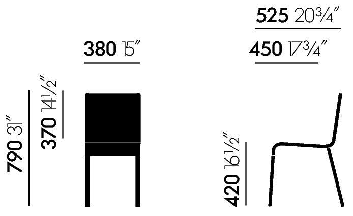 | Material | Sitzschale: Integralschaum-Sitzschale aus Polyurethan, schwarz Hinterbeine: Stahlrohr, schwarz Vorderbeine: Aluminiumprofil, schwarz pulverbeschichtet |