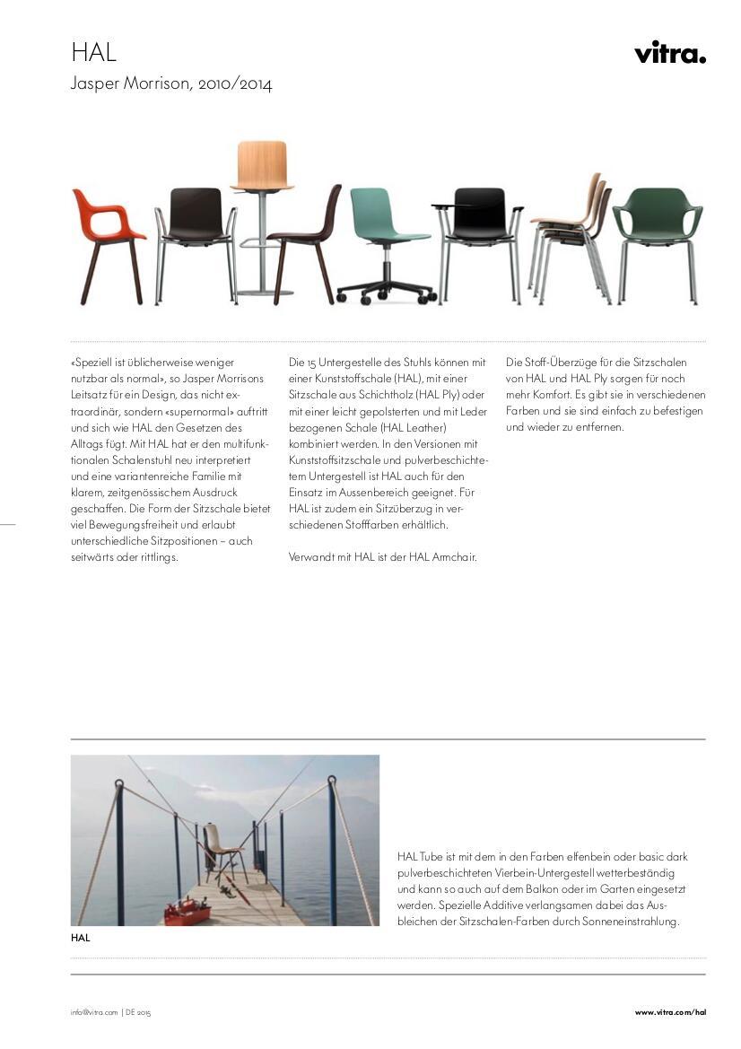 Der HAL Ply Tube, von Jasper Morrison für Vitra designt, gehört zur Produktserie der HAL Chairs. Die Kollektion umfasst zahlreiche Stühle, die verschiedene Untergestelle, Sitzschalen, Farben und Materialien kombinieren. Ziel der Konzeption war es, Sitzmöbel zu entwerfen, die sich aufgrund ihrer Vielfalt, aber simpel und funktional gehaltenen Optik unaufdringlich in den Alltag einfügen. Die schlichte Gestalt des Stuhls HAL Ply Tube basiert auf einem Untergestell aus verchromtem Stahlrohr, die Sitzschale besteht aus hochwertigem Schichtholz, und steht den Kunststoffversionen in Sachen Sitzkomfort in nichts nach. Der HAL Ply Tube ist schön als Esszimmerstuhl, fügt sich aufgrund seines einfachen Designs aber auch gut in viele andere Bereichen ein. Außerdem lässt er sich harmonisch mit den anderen HAL Stühlen kombinieren.