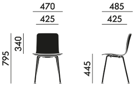 | Material | Sitzschale: Schichtholz, in drei Ausführungen erhältlich Untergestell: Stahlrohr, verchromt |