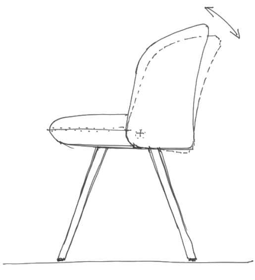 | Funktion & Eigenschaften | Der Mikado Side Chair passt sich Ihrer Sitzposition flexibel an. Dazu ist ein Mechanismus verbaut, der die Rückenlehne nach hinten federn lässt.![]() Skizze der Designer Edward Barber und Jay Osgerby. |