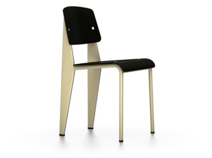 Der Konstruktion und dem Design des Vitra Stuhls Standard SP legte Jean Prouvé statische Überlegungen zugrunde: Da an den Hinterbeinen die Belastung am größten ist, wurden diese mit dreieckig geformten, flächigen Beinen aus Stahlblech gestaltet, während an der Vorderseite aufgrund der geringeren Belastung dünne Stahlrohrbeine eingesetzt werden konnten. Da hier die Statik als auschlaggebendes Element mit in das Design einbezogen wurde, hebt sich der Stuhl deutlich von anderen ab und stellt gewissermaßen ein gelungenes Crossover-Objekt aus Baukunst und Gestaltung dar. Die Sitzfläche und die Rückenlehne des Standard SP werden, anders als die des Vitra Stuhls Standard, aus ASA-Kunststoff gefertigt. Das Untergestell aus Stahlblech und Rundrohr sorgt für einen festen Stand. Genau wie der ursprüngliche Standard Stuhl von Jean Prouvé ist auch der Standard SP Teil der Vitra Herstellergarantie.