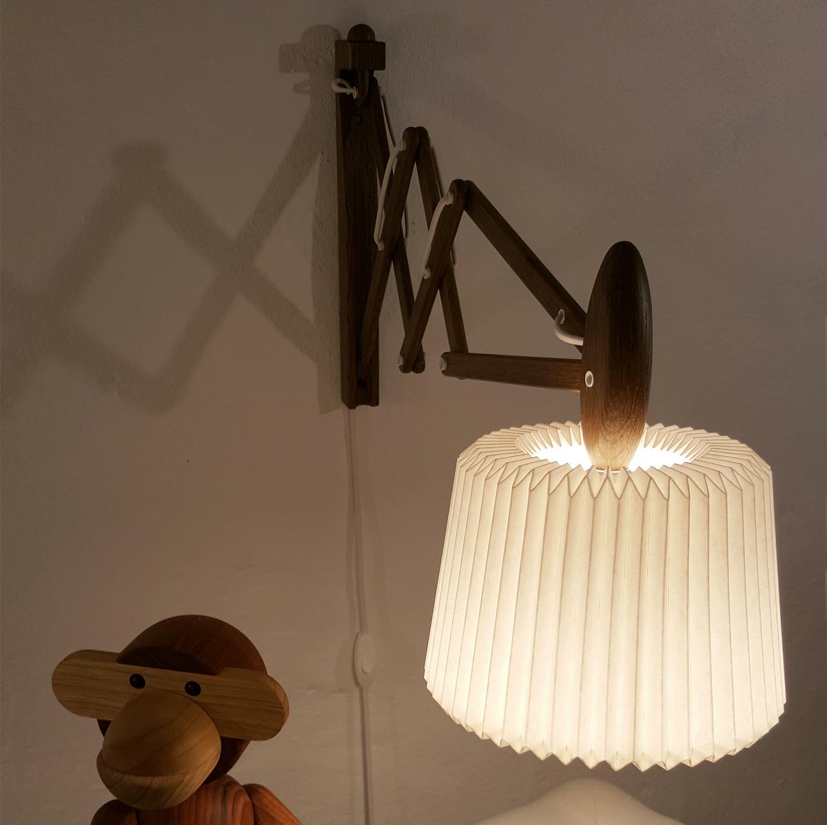 Papier: Ähnlich wie halbtransparentes Glas sorgt Papier für eine angenehme, diffuse und gleichmäßige Lichtverteilung. Wandleuchten aus Papier, wie die Scherenleuchte Sax 120 + 223 von Le Klint, strahlen eine besonders natürliche Wärme aus und setzen so besonders harmonische und wohnliche Akzente in der Raumgestaltung.