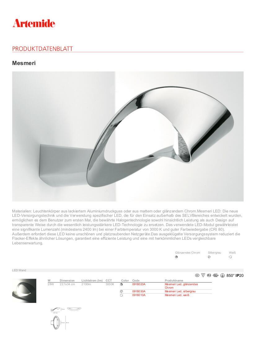 Die Artemide Wandleuchte Mesmeri von Eric Solè besteht aus nur einer einzigen weich geschwungenen Form und fügt sich mit ihrem organischen Look in unterschiedlichste Räumlichkeiten ein. Gefertigt aus Aluminiumdruckguss zieht Mesmeri mit ihrer dezenten Extravaganz die Blicke auf sich. Aber nicht nur in puncto Design ist Mesmeri eine echte Besonderheit, der Leuchtenexperte Artemide hat die Wandleuchte mit spezieller Lichttechnik ausgestattet: Das Licht des 230 Watt Eco Halogenstabs wird über den hammergeschlagenen Reflektor diffus abgestrahlt und sorgt so für eine gleichmäßige Lichtverteilung ohne zu blenden.