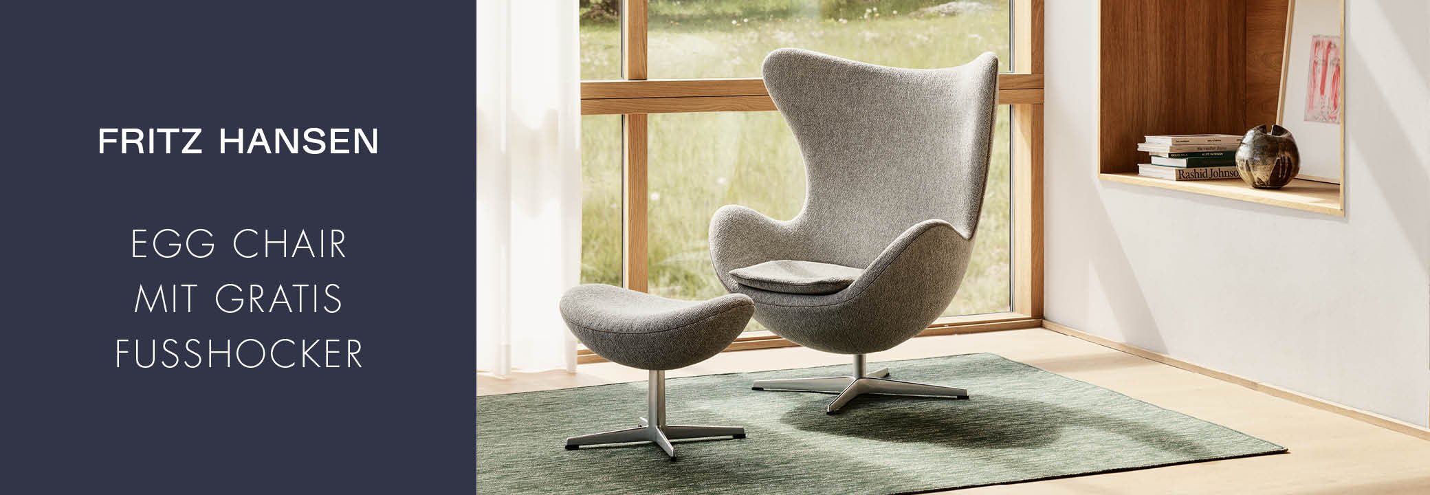 Designklassiker und ikonisches Meisterstück: Der Egg Chair von Arne Jacobsen macht jeden Raum zu einem stilvollen Statement und vereint zeitlose Eleganz mit unvergleichlichem Sitzkomfort. Bis zum 31. März 2026 erhalten Sie beim Kauf eines Egg Chair den passenden Fußhocker von uns geschenkt. Wählen Sie dafür einfach Ihre gewünschte Ausführung inklusive Fußhocker aus und der Preisvorteil wird Ihnen direkt angezeigt.