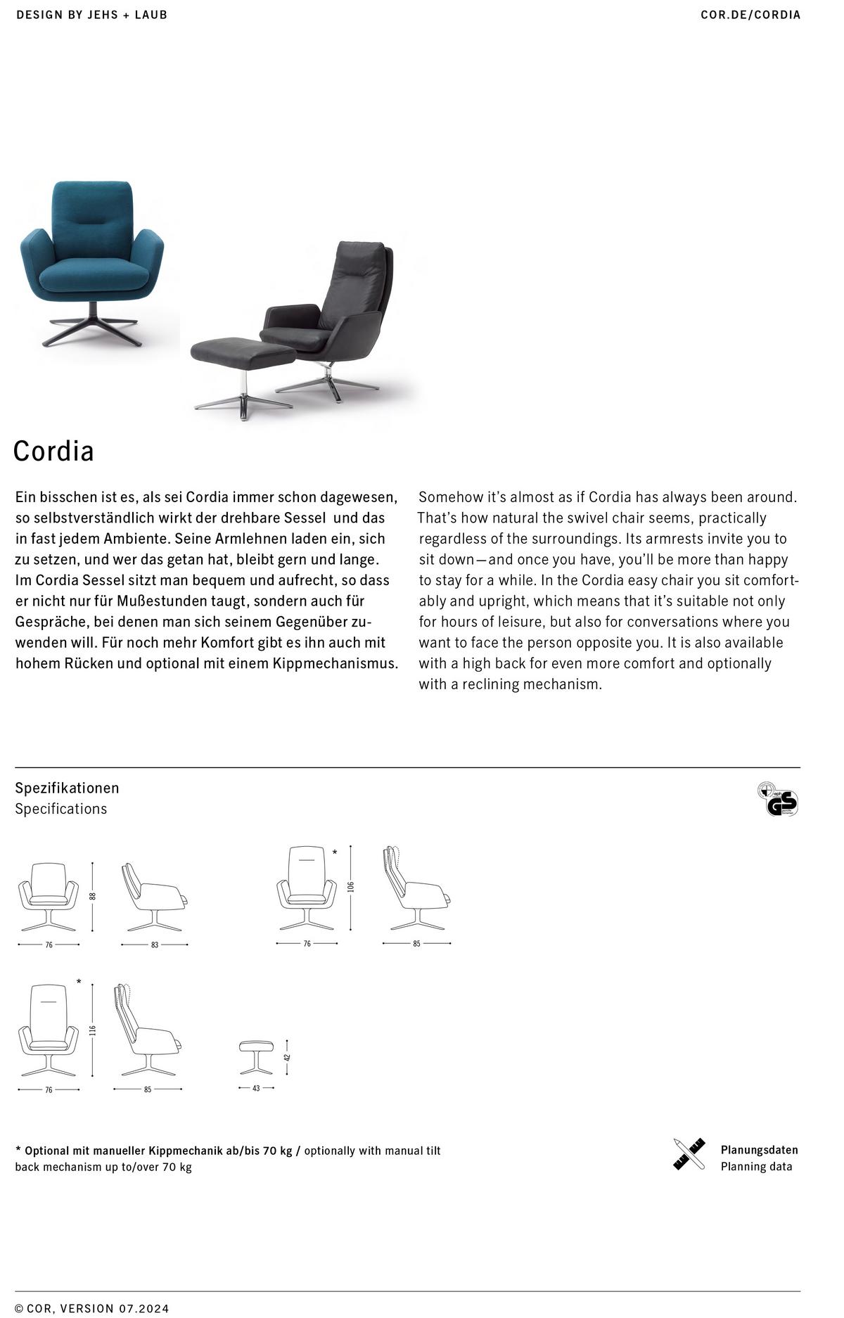 Der vom Designer-Duo Jehs + Laub entworfene Cordia Sessel von COR vereint eine markante Linienführung mit außergewöhnlichem Sitzkomfort. Dank seiner drehbaren Basis und der optionalen Kippmechanik lädt das Möbelstück zu Entspannung in jeder Position ein. In Kombination mit dem passenden Ottoman verwandelt sich der Sessel in eine gemütliche Rückzugsoase, die zum Verweilen und Füßehochlegen einlädt. Ob im heimischen Wohnzimmer oder als eleganter Ruhepol in modernen Office-Lounges – der Cordia ist die perfekte Wahl zum gemütlichen Verweilen.