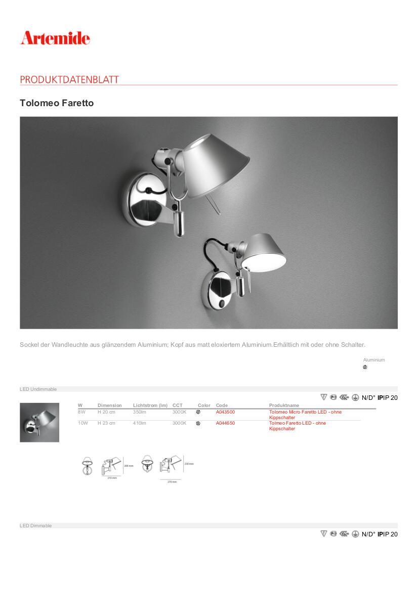 Die Tolomeo Faretto gehört zur erfolgreichen Tolomeo Lampenkollektion, die von den Designern Giancarlo Fassina und Michele De Lucchi für den italienischen Hersteller von Designleuchten, Artemide entworfen wurde. Die kleine Wandleuchte punktet vor allem als praktische, weil platzsparende Nachttischlampe. Das Design sowie die Aluminium-Optik sind zeitlos und klassisch, wodurch die Leuchte in vielen Umgebungen einsetzbar ist. Dank des schwenkbaren Leuchtenkopfes eignet sich ihr zentriertes Licht sowohl als Lesehilfe neben dem Bett oder Sofa als auch, nach oben gerichtet, als indirekte Beleuchtung. Der Leuchtenhersteller Artemide ist bekannt für seine hochwertigen Produkte „Made in Italy“. Mit Sitz nahe Mailand ist hier stilvolles Design und hochwertige Verarbeitung Programm. All das geschieht im Kontext des „The Human Light“-Prinzips, welches darauf anspielt, dass Licht die Emotionen der Menschen unterbewusst und ganz unterschiedlich anspricht und damit auch das allgemeine Wohlbefinden beeinflusst. Generell soll nicht nur die Beleuchtung eines Raumes im Mittelpunkt stehen, sondern besonders die Aktivitäten, denen Menschen in diesem Raum nachgehen – wofür auch Artemides Tolomeo Faretto ein gutes Beispiel liefert.